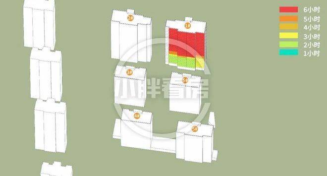 分析结果是这样:计算已考虑周边所有建筑的影响,结果表明南边住宅不会对本次开盘楼栋产生遮挡,楼栋仅受地块内部影响。(说明:本文日照数据基于公示规划图纸文件,使用专业制作工具完成,仅供参考)