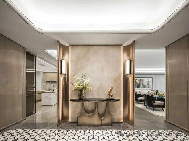 ·玉兰门庭:取意上海市花白玉兰,勾勒总长约65米、高约13.7米的玉兰门庭:飞翼祥纹铜雕府门镶嵌非遗掐丝珐琅门钹,礼迎璀璨归途;环抱式落客前场移步易景,归家仪式感拉满。