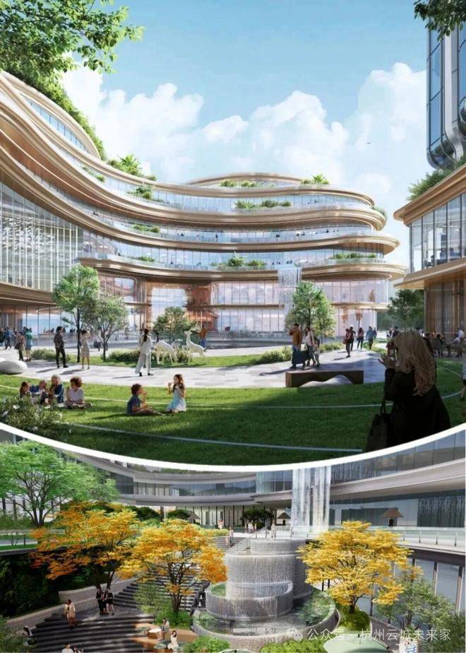 云门公园(直线距离约350米),总面积约30万方,相当于42个足球场,它把江南园林的丘、峰、台、阁都搬了进来,还规划了“公园十景”,未来感十足。最大的特色是有一条巨大的空中绿廊,把西站、办公楼都连了起来。里面还会建青少年活动中心(城西分中心)、文化活动中心、健身中心,户外儿童活动场地还有大片草坪和水系。