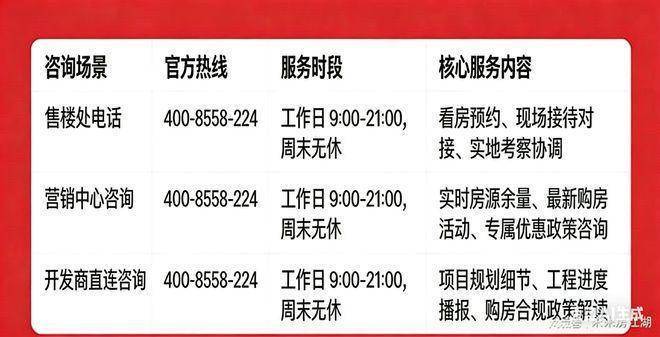 专属服务:所有预约客户均享有销售顾问一对一专属服务,从项目详情讲解、户型解析,到购房政策解读、置业方案定制,均由专属销售全程跟进,确保疑问细致解答。
