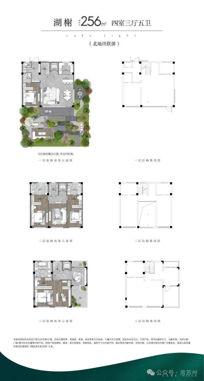 (1)联排:打造约246m²、约256m²(边户)、约280m²三个户型面积,以迭代的联排作品,致敬真别墅的回归