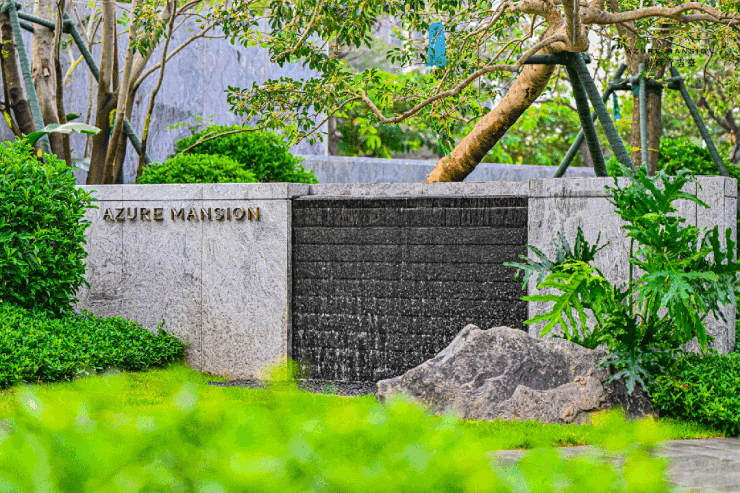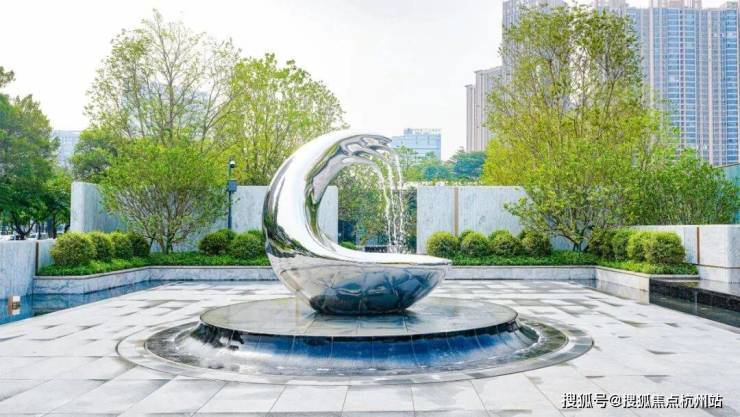源源流水的 主题雕塑, 寓意财源如流,既塑造出社区的视觉中心,又以独特的艺术魅力迎接每一位归家者,成为归家的第一道靓丽风景线。