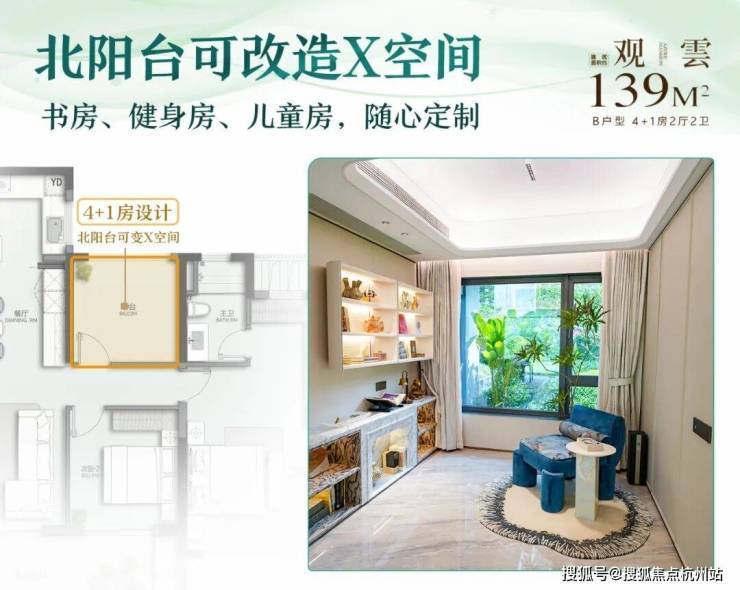 北阳台被巧妙 预留为X空间,业主可根据需求进行功能定制,无论是打造成书房、健身房、儿童游乐区还是电竞房,都能轻松实现。