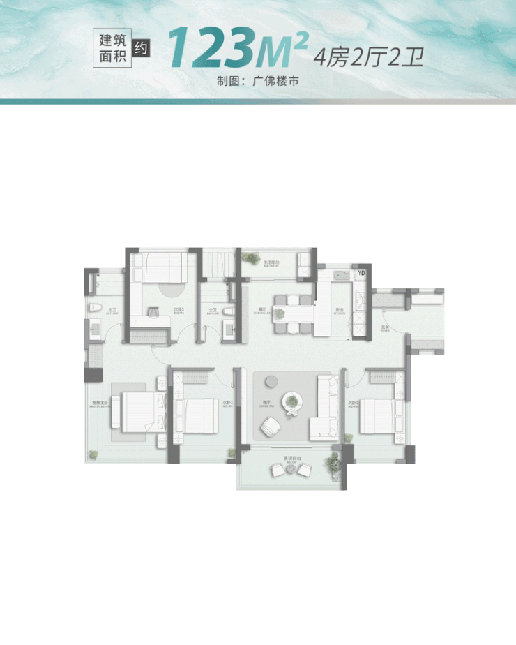 南北通透双阳台, 一面生活一面风景,精准匹配佛山人对改善居住的最基本需求。