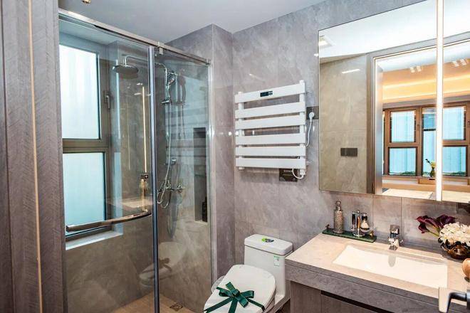 “东芝(或同等品牌,下同)空调、中科睿赛新风系统、威能地暖”三件套,卫浴采用科勒洁具、龙头和花洒,品质感十足。