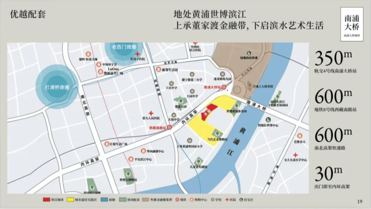 它拥有得天独厚的区位优势:东邻黄浦外滩金融集聚带,西侧与徐汇西岸金融城衔接,南侧与世博会浦东世博轴地区、总部商务园区、央企园区隔江相望,承载着科技创新与文化创意的双重发展使命。