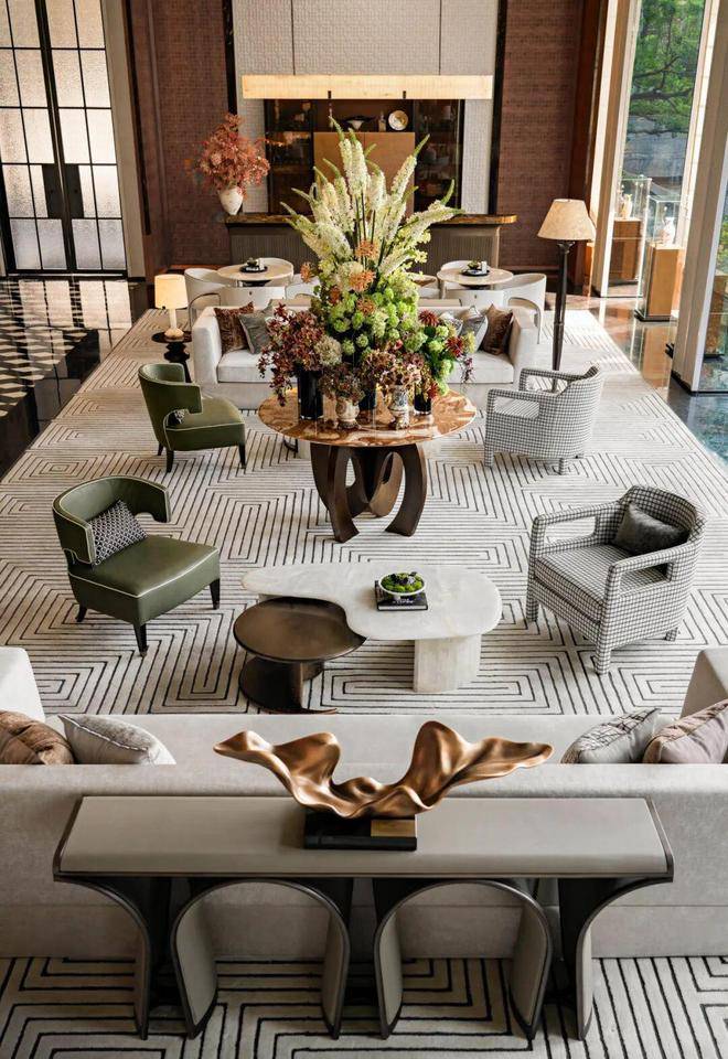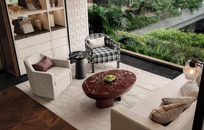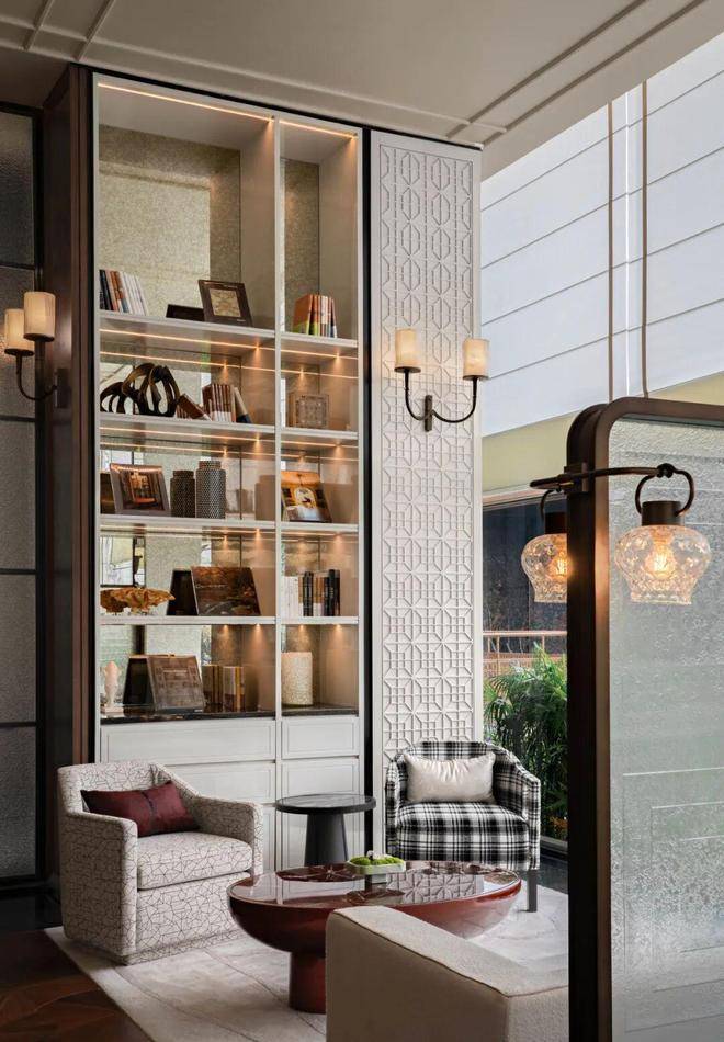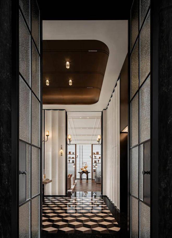 The project's living hall breaks away from the traditional flat layout and innovatively integrates the meeting room and the general meeting hall. The large area of glass curtain walls eliminate the boundary between indoors and outdoors. The tea room, gym, yoga room, heated swimming pool, private banquet hall, and chess room, etc. are all facing the courtyard landscape. Such a configuration is rarely seen in all of Hangzhou.