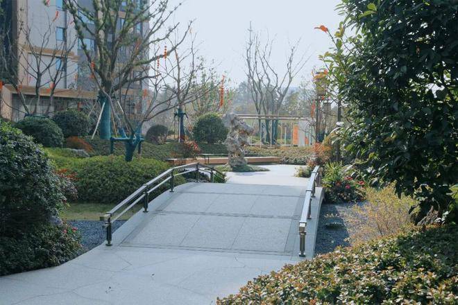消防登高面通过材质搭配与可移动设施优化,入户区域结合花池、景墙打造仪式感花园,功能性与观赏性无缝融合。
