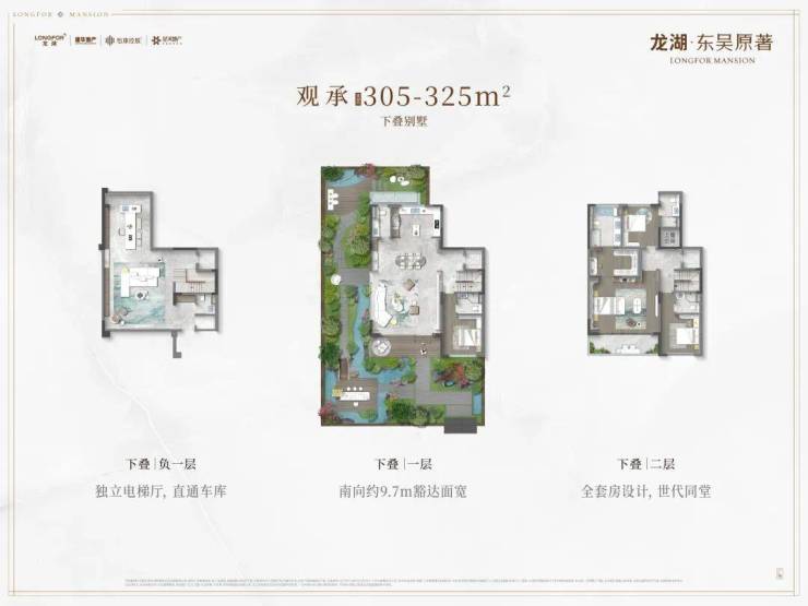 建面约305-325㎡下叠户型突破传统“双首层庭院”思维,实现全明采光地下室+地上私院双向延伸。