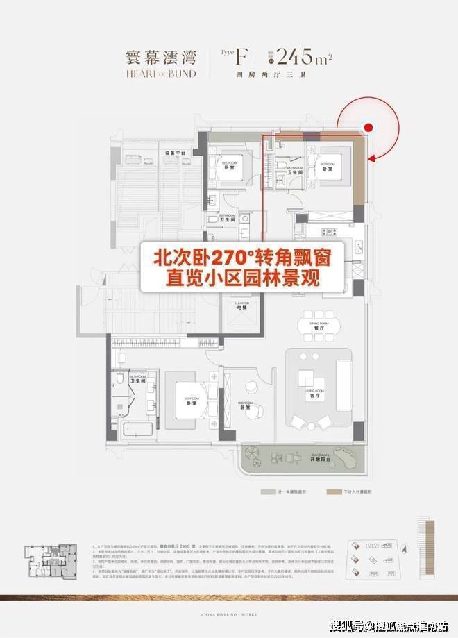 ⑤北次卧套房270°转角飘窗,直览小区园林景观!