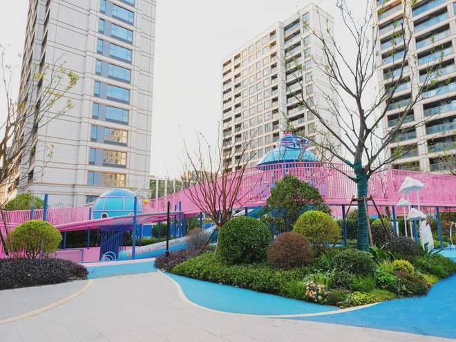 这片精心规划的游乐区,配备了丰富多样的儿童游乐设施,如太空组合滑梯、太空科普墙、粉色沙坑、无动力水池等,孩子们可以尽情探索、乐趣无限。