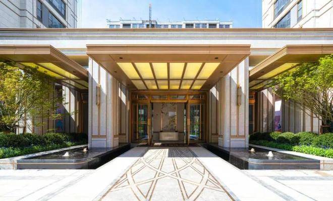从项目南入口,穿越前厅的潺潺水景,便是与社区建筑完美融合的门厅大堂,其设计简约而不失精致,摒弃繁复细节,彰显出新海派独有的高雅格调。