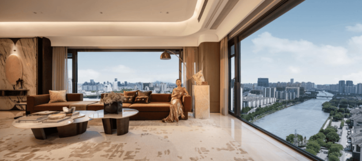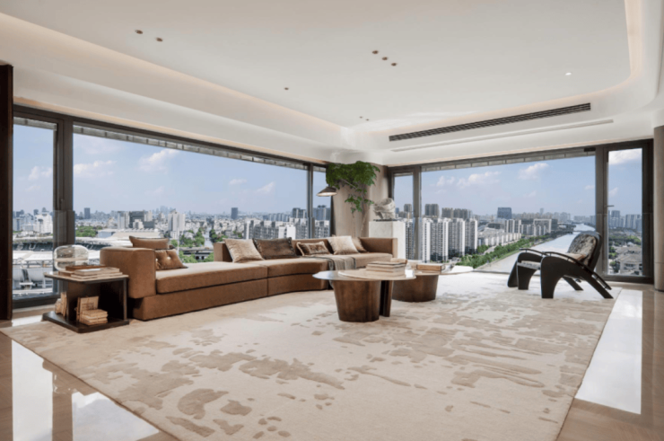 通过尽可能拓宽视野的设计,实现自然与生活的深度交融:清晨的运河晨雾、正午的粼粼波光、傍晚的城市霞光,都成为日常起居的流动背景,这正是奢宅生活的要义。