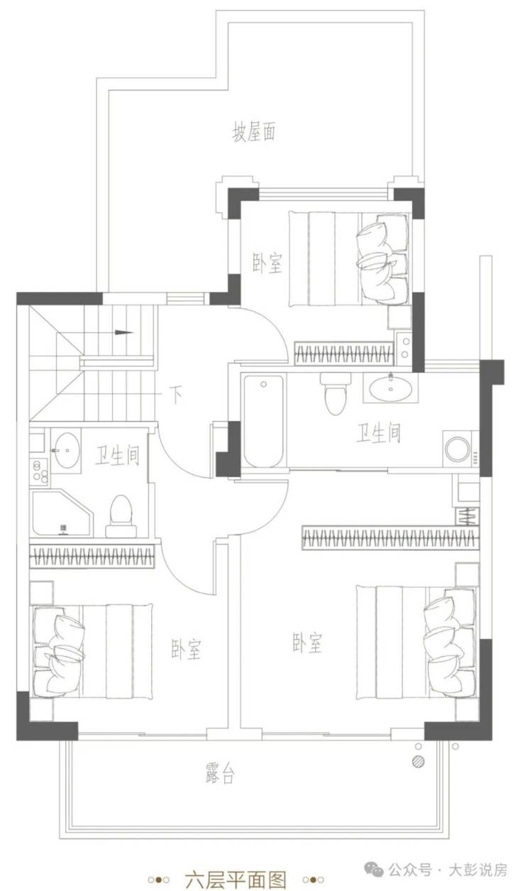 上叠:带露台 + 阁楼(北露台约 10㎡/ 南露台约 17㎡/ 阁楼约 40㎡)