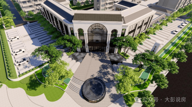 湖语颂建筑风格为法式风格,立面材料为局部石材、真石漆、保温一体板及L0W-E中空玻璃,整体色调为经典的法式米白色搭配灰色坡屋顶,透露出法式优雅高贵的质感。