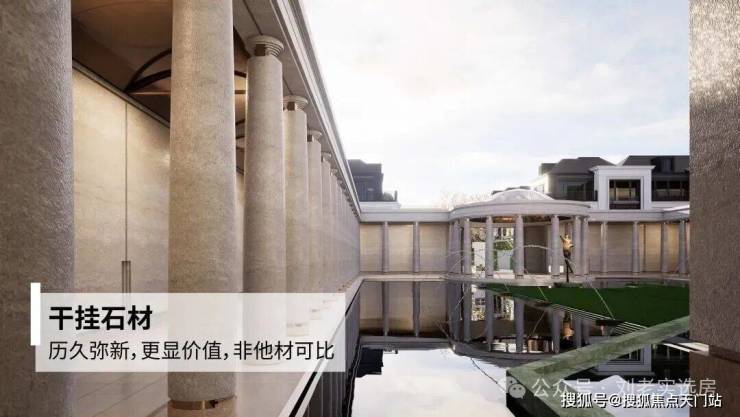 包括立面: 门头: 廊柱: 甚至是地面,用的都是石材: 这样的设计即使是在顶豪圈也不多见,上一次看到还是黄浦的 融创外滩壹号院 。