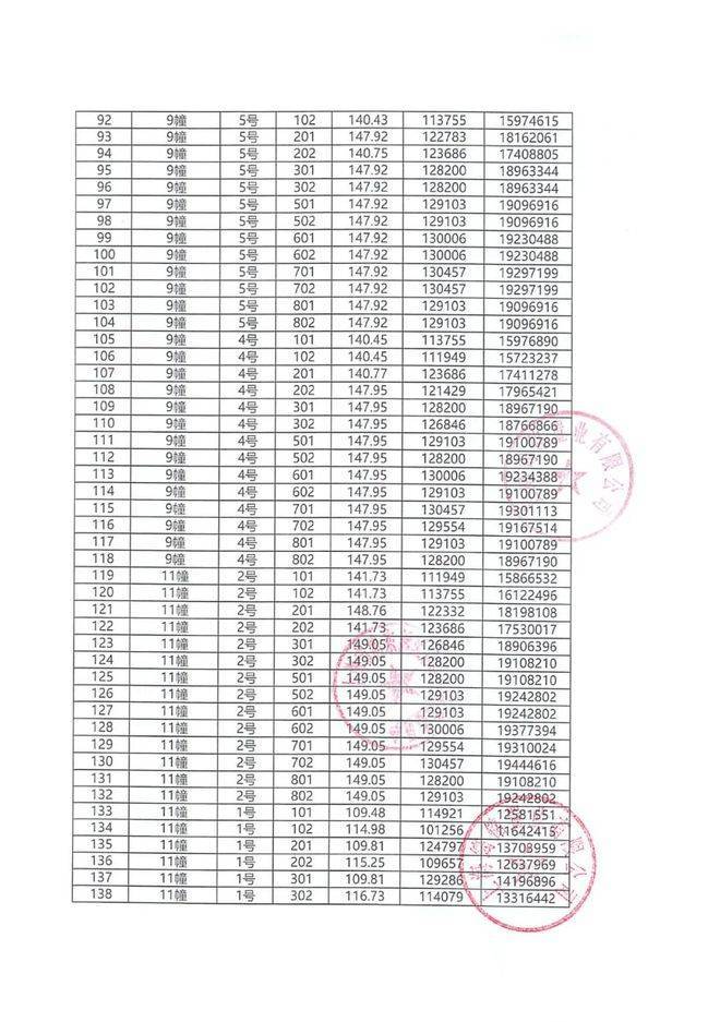 一房一价表如下: