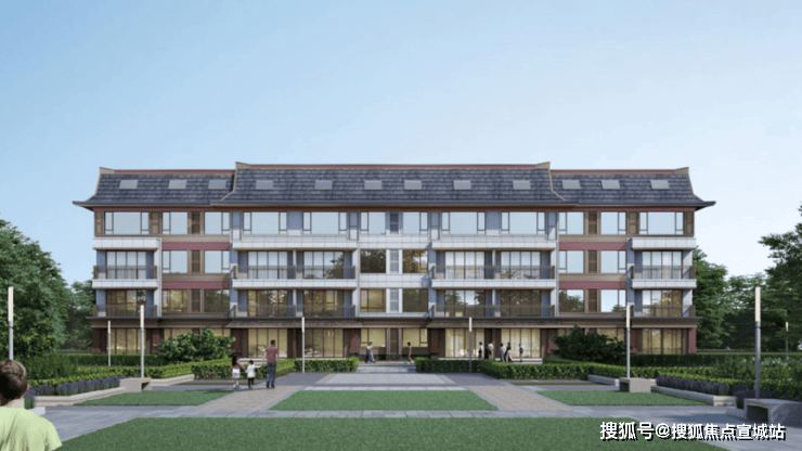 建筑单体:外立面风格为现代中式风格,外墙采用石材。