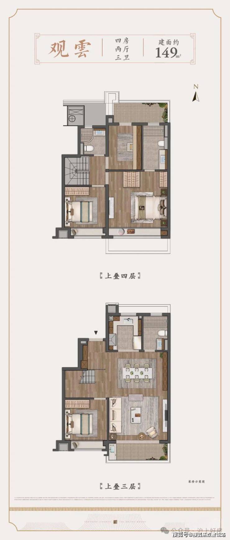 上叠建面约149㎡4房户型▼