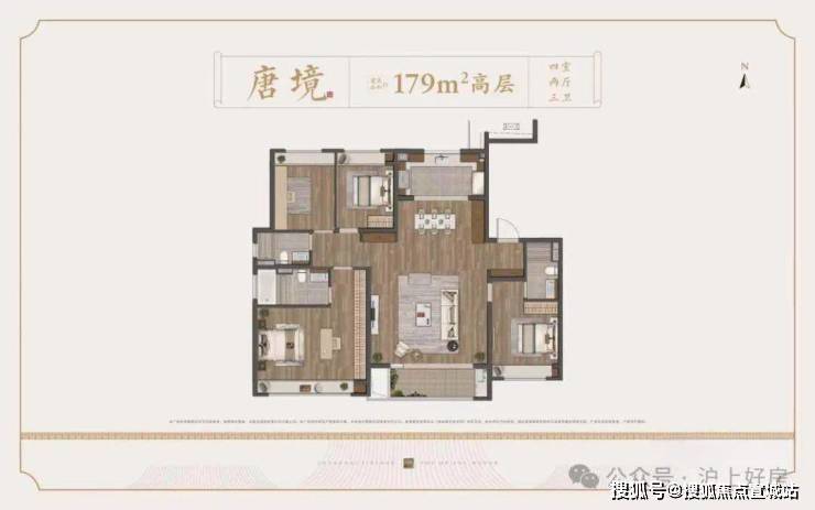 高层建面约179㎡4房2厅3卫▼