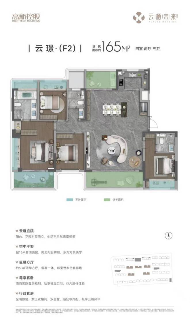 精装交付:均价约23500元/㎡,含中央空调+新风系统,主力户型为建面125-165㎡四房