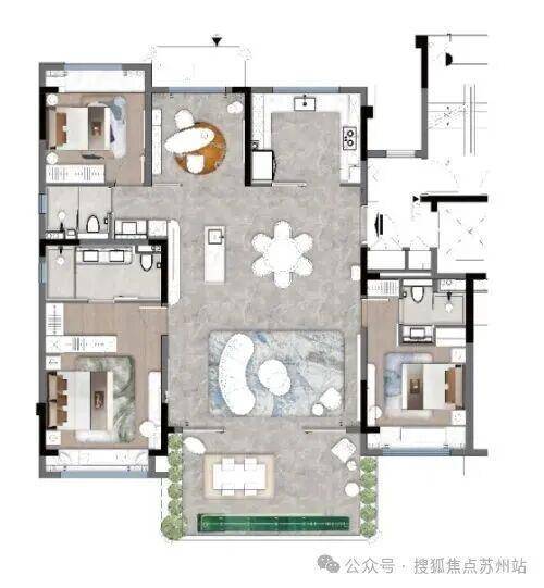 云阙户型建筑面积约120㎡ 三房两厅两卫超享尺度|约6m横厅布局|酒店级主卧套房|约17㎡露台花园|3+X灵动空间