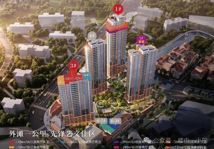 •户型:主力建筑面积121㎡三房及160㎡四房,得房率高达97%。