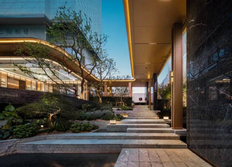 项目的庭院实景,可以明显感受到,它区别于之江以往的任何一个项目,最直观的体会就是“拾级而上,一步一景”。