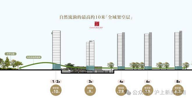 这个标准比不少甲级写字楼还高,几乎跟国金中心、柏悦酒店那种顶级商用空间看齐了,这样的架空层高度,天然的让建筑悬浮在植被之上,每户都是景观最C位。