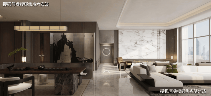 室内空间更显建筑大师的匠心独运,约100m²的方厅采用帝王轴线布局,4.75米层高如哥特式教堂般营造神圣尺度感,270°环幕落地窗将城市天际线装裱成流动画卷。