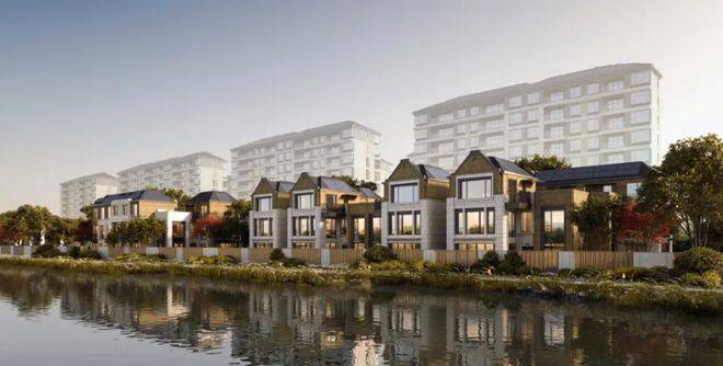 容积率仅约1.01,为松江罕见超低密墅区,规划为3层联排别墅+10层墅境平层组合,环河排布,拥约500米原生水岸与180°河景视野