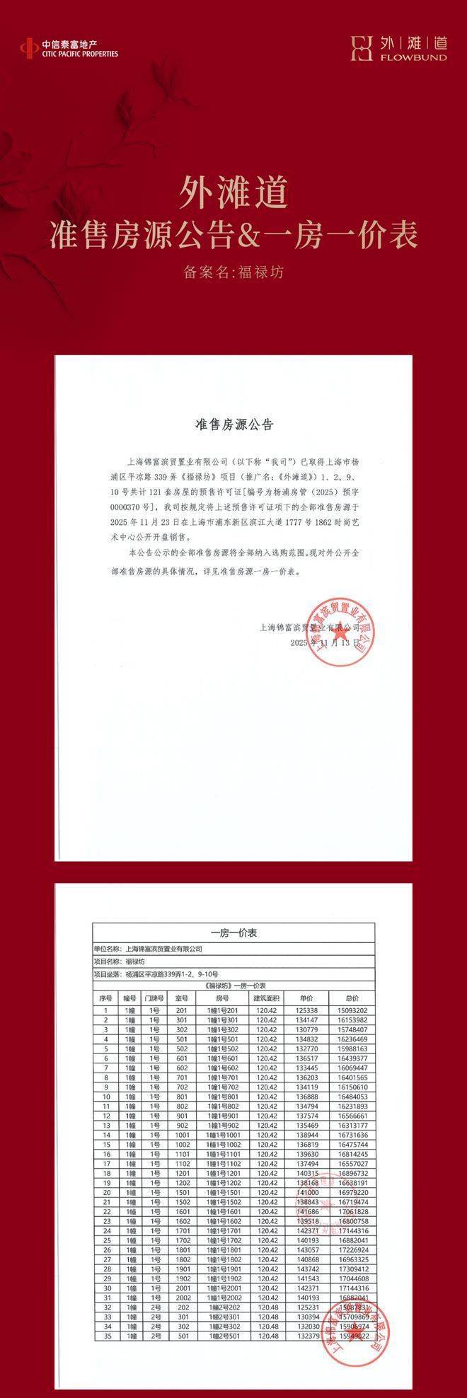 杨浦滨江内环内的外滩道正在认购!首开121套建面约120-190㎡3-4房,均价13.85万元/㎡。