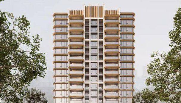建筑以暖色为基调,香槟金为点缀,全幅玻璃幕墙搭配澄澈镜幕弧形立面,以柔美、流动的姿态赋新高端人居美学,成为激发情感联结、承载生活温度的精神栖息地。