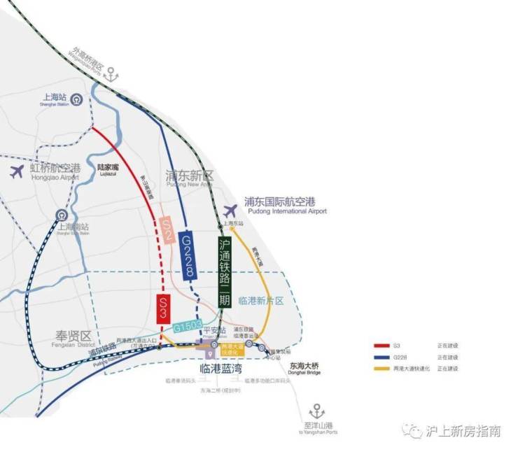 轨道交通16号线、27号线(招标中);南枫线、曹奉线(规划中)S2、G1503、S3沪奉高速(在建);六大交通线路,形成通达全球的门户枢纽,三横两纵深度串联全球城市格局;