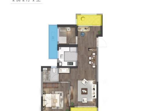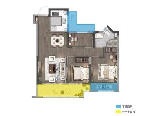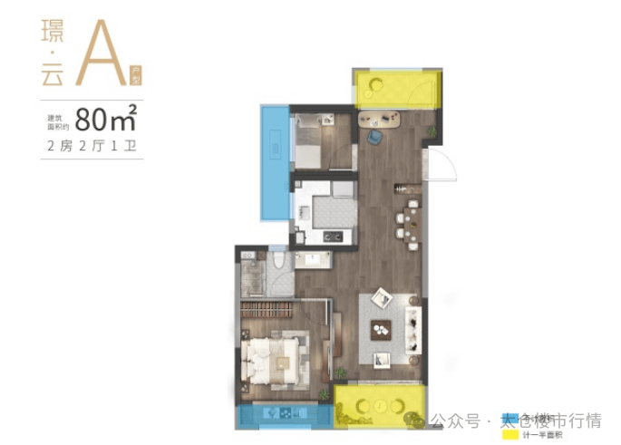 80㎡(2 房 2 厅 1 卫):刚需优选,方正通透,餐客一体连阳台。