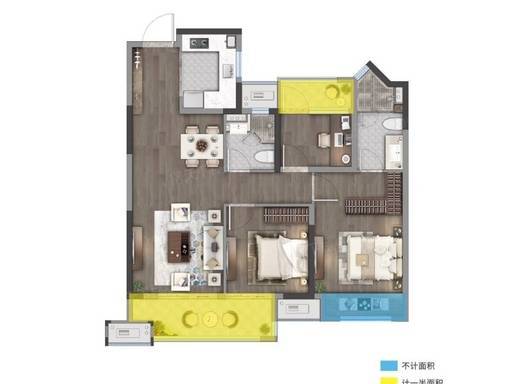 建筑面积约80-119㎡全生命周期户型,二房到四房设计,承载从二人世界到三代同堂的家庭进阶过程,适应不同家庭所需,构筑更为丰盈的生活场景。我们希望为每一户打造的家不是过渡,而是一生居所。