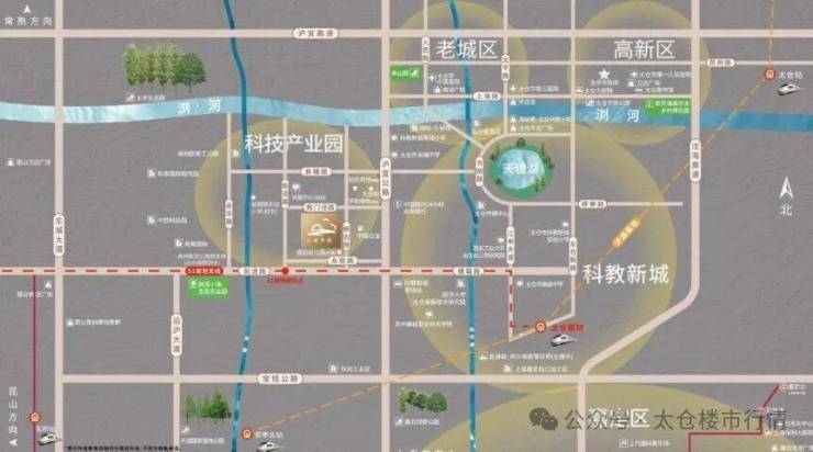 交通:太仓南站、沪宜公路、沈海高速、苏州S1支线太仓段(规划中)、上海轨交11号线延伸段(规划中)