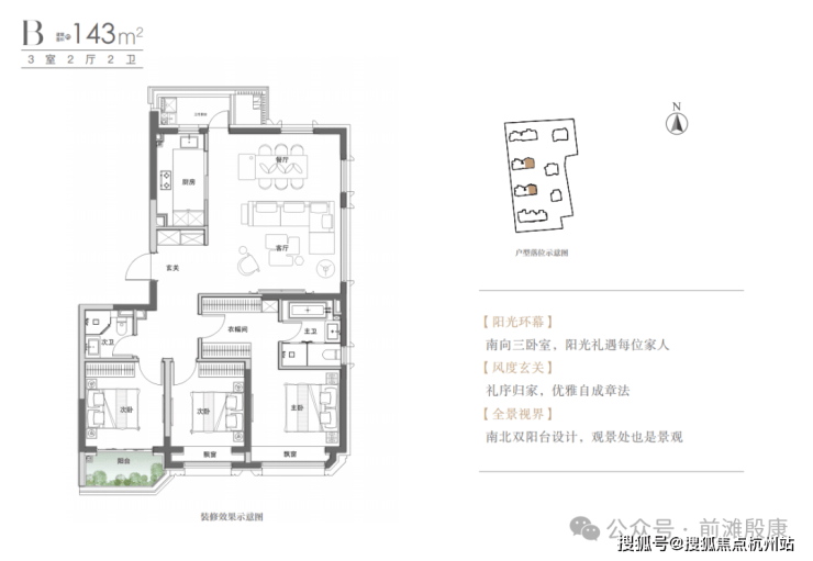 户型三开间朝南,约12.55米南向面宽采光充足,大宽厅空间开阔,采光也相当舒服。三个卧室尺度感全部做到位。主卧配备独立衣帽间与浴缸,南次卧同样采用套间设计,北次卧也可以轻松摆下1.5M双人床+两个床头柜+书桌(只要多看过几个新盘,就知道这个北次卧尺度的含金量)。