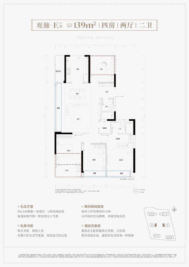 除了适合初改家庭的三房户型外,鸣澜里139平户型同样做的不错,打造四房两厅两卫,分为横竖两款,全部为边套,两梯两户设计。