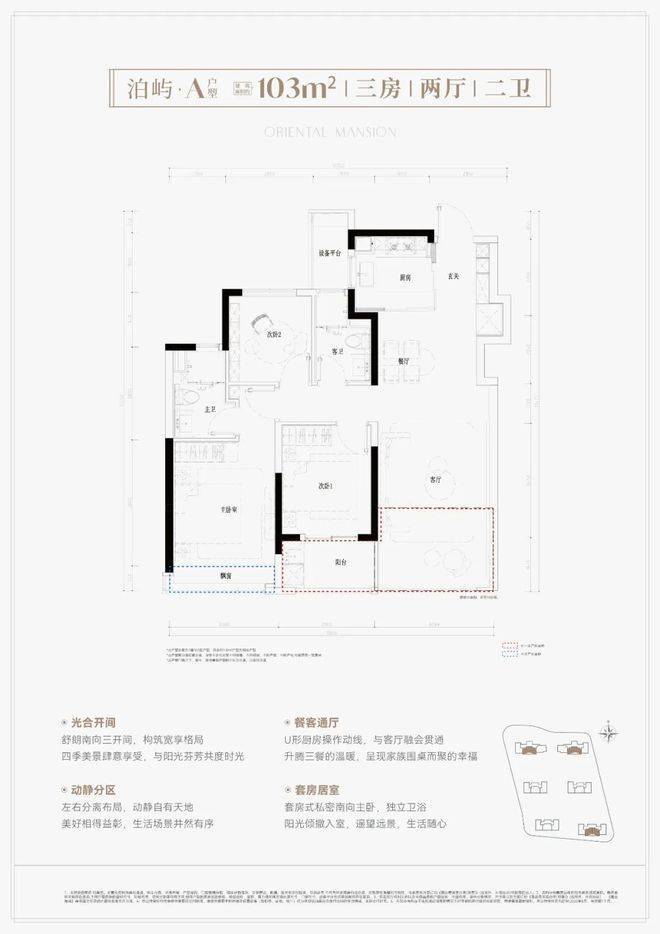 鸣澜里共规划6幢17-24F高层住宅,户型面积约103㎡、120㎡、126㎡、139㎡,共四种主力户型,可售房源共385套,覆盖首置、改善人群。