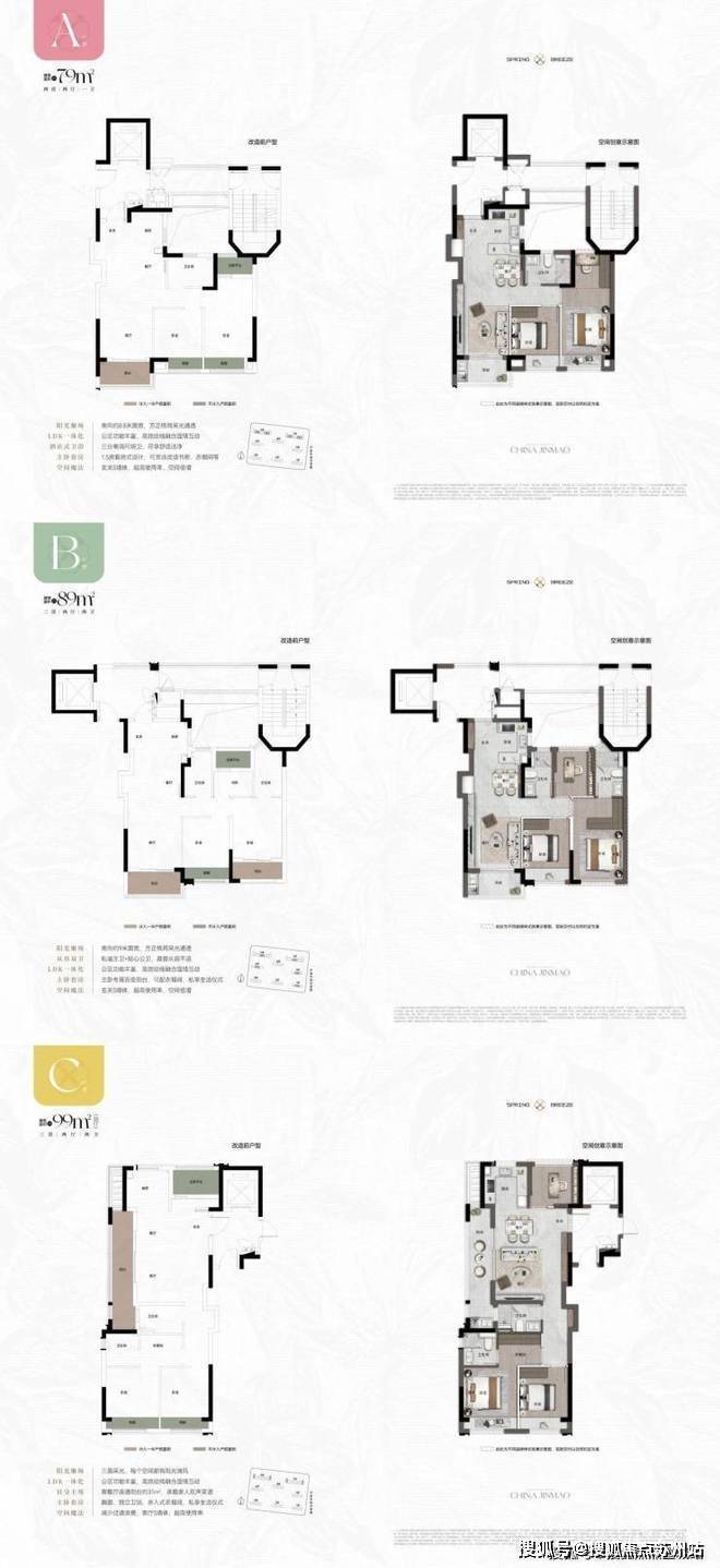 特色:79㎡户型得房率88%,89㎡可改造为大横厅设计