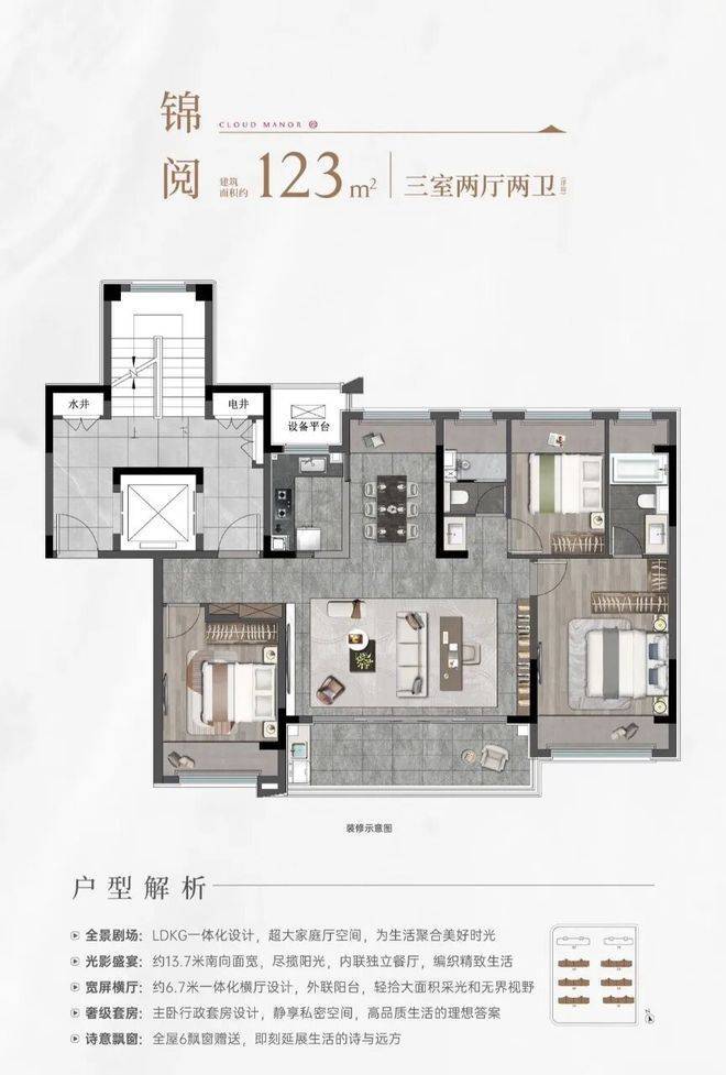 1、洋房:123㎡(6-7F)