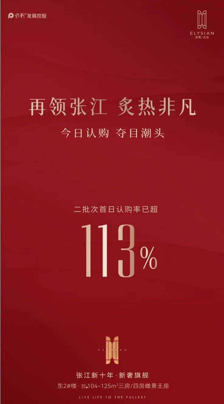 张江现象级日光盘-保利天奕二批次开启认购,102套建面约104-125㎡3-4房,首日认购115+组,认购率超113%!