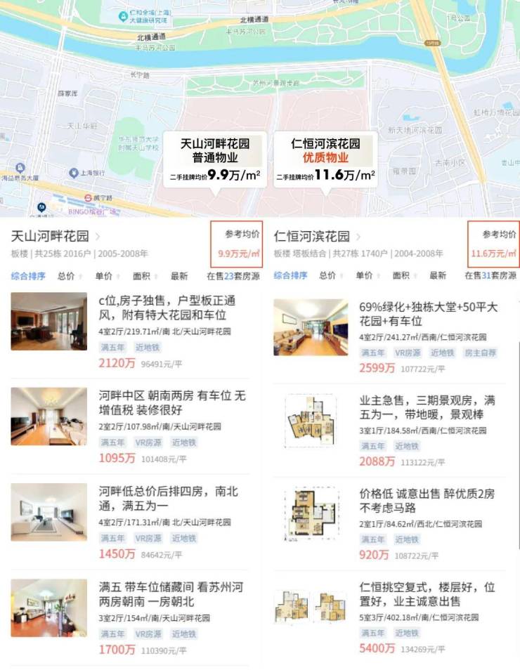 小胖君统计了板块内标杆二手房挂牌/成交价,很明显可以看到,越靠近板块核心的地铁站周边,标杆二手房的价格越高,倒挂也就越明显!