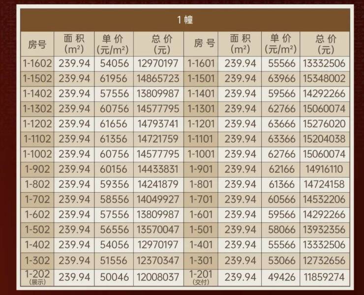 269、销售价:以基价增减楼层和朝向差价后得出的价格。
