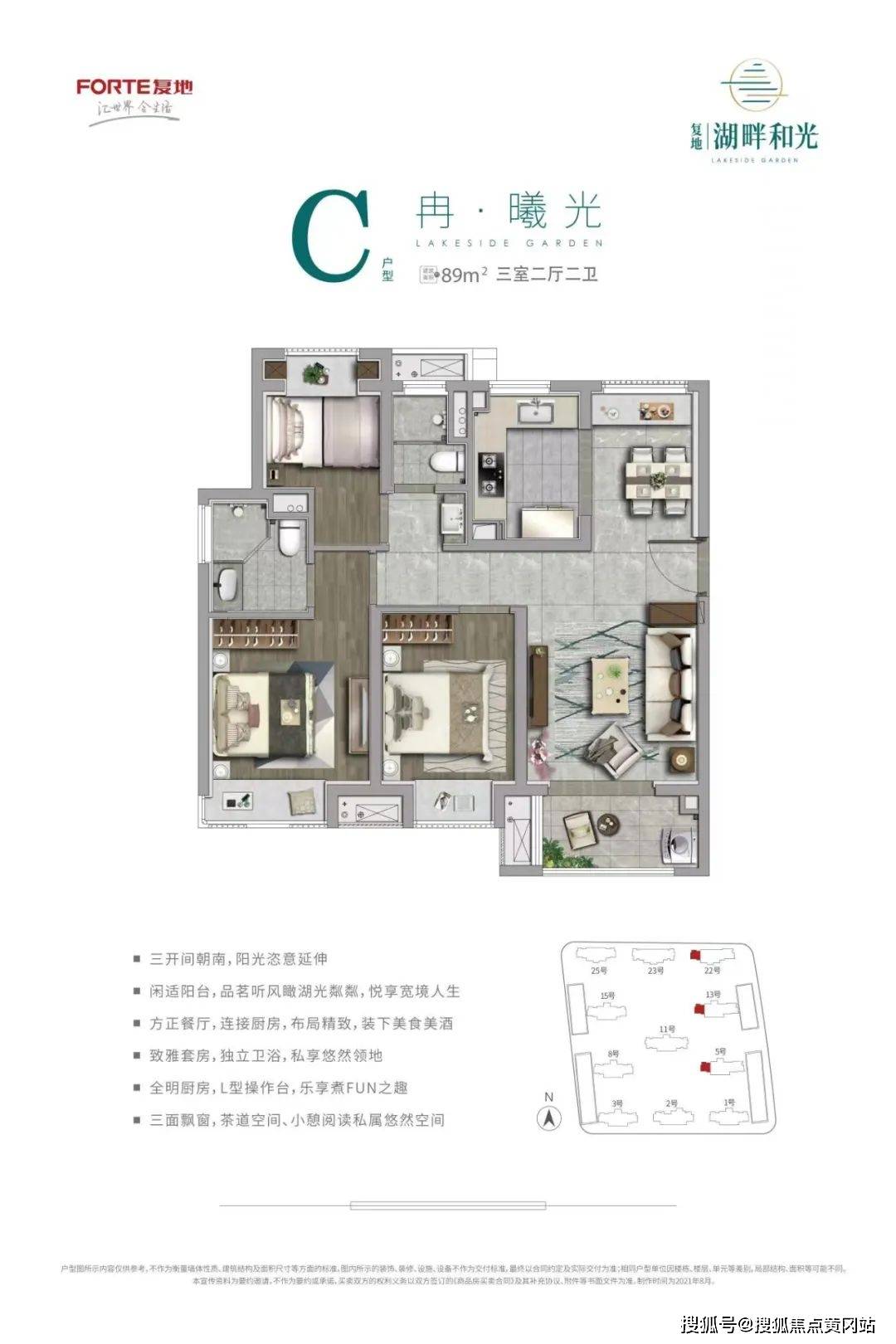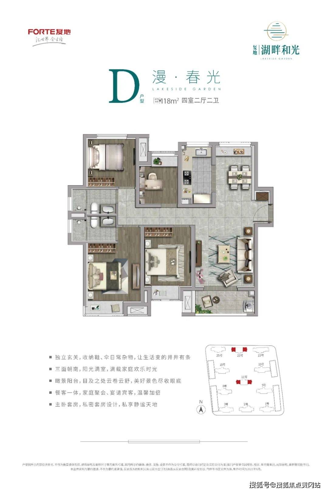 复地·湖畔和光本次主推约75-136㎡2-4房,精装交付。