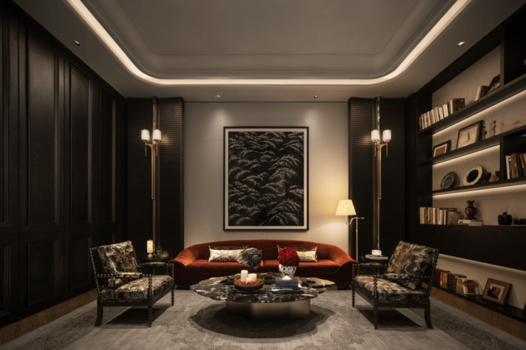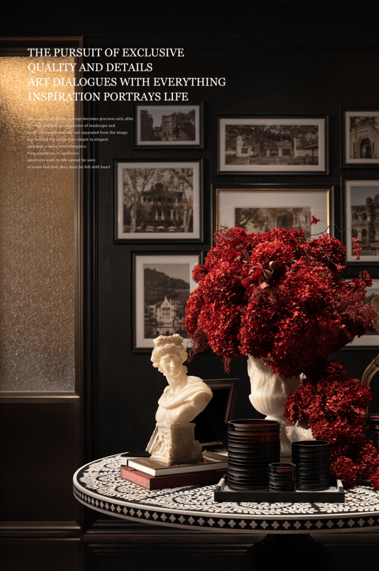 法式美學的優雅圓弧和深色系的沉穩基調作為空間構建的骨架,每一處細節,都彰顯著對傳統文化的致敬與創新。