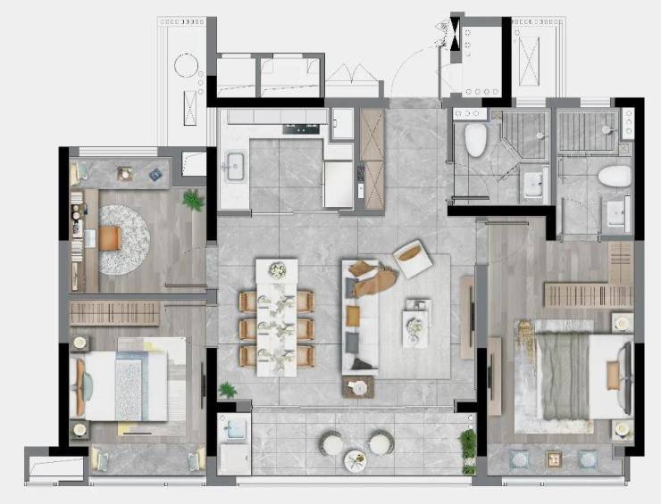 超强的功能性和尺度,无论是二孩家庭还是三代同堂,这个户型都能轻松驾驭。