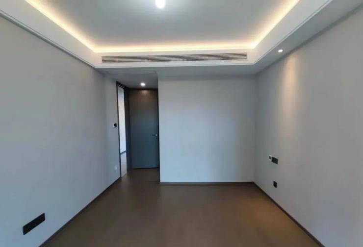 约5.5米的大横厅,连上外接的南向大阳台,形成了一个尺度感超强的公区。主卧除了自带的飘窗和独卫,甚至还预留了一个走入式衣帽间的空间。