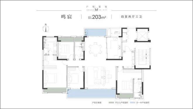 建面约203㎡,四室两厅三卫